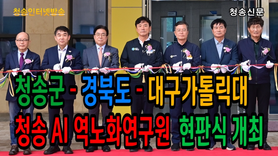 청송군은 지난 25일 청송 황금사과연구단지에서 청송군·경상북도·대구가톨릭대학교와 함께 ‘청송 AI 역노화연구원’ 현판식을 개최했다.