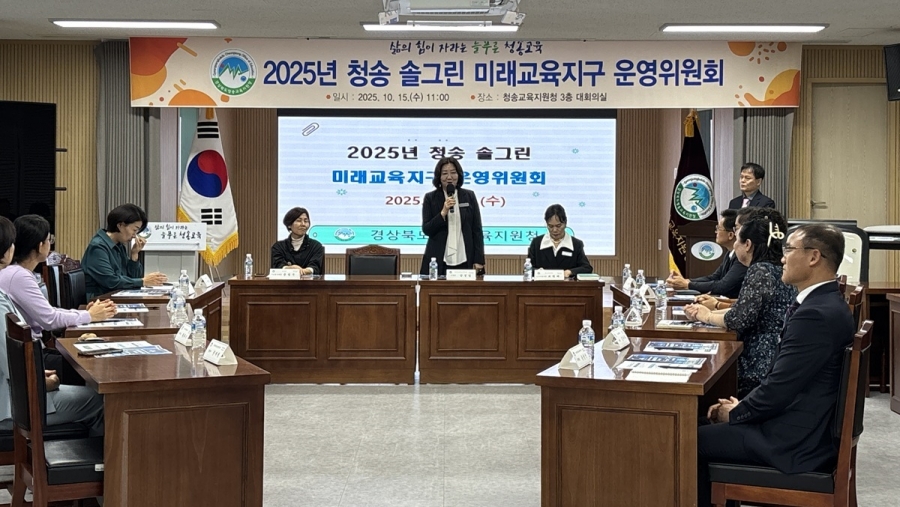 청송교육지원청(교육장 남정일)은 지난 15일 대회의실에서 2025년 청송 솔그린 미래교육지구 사업 추진 현황과 2026년 미래교육지구 발전 방안 모색을 위해 정기 운영위원회를 개최했다.