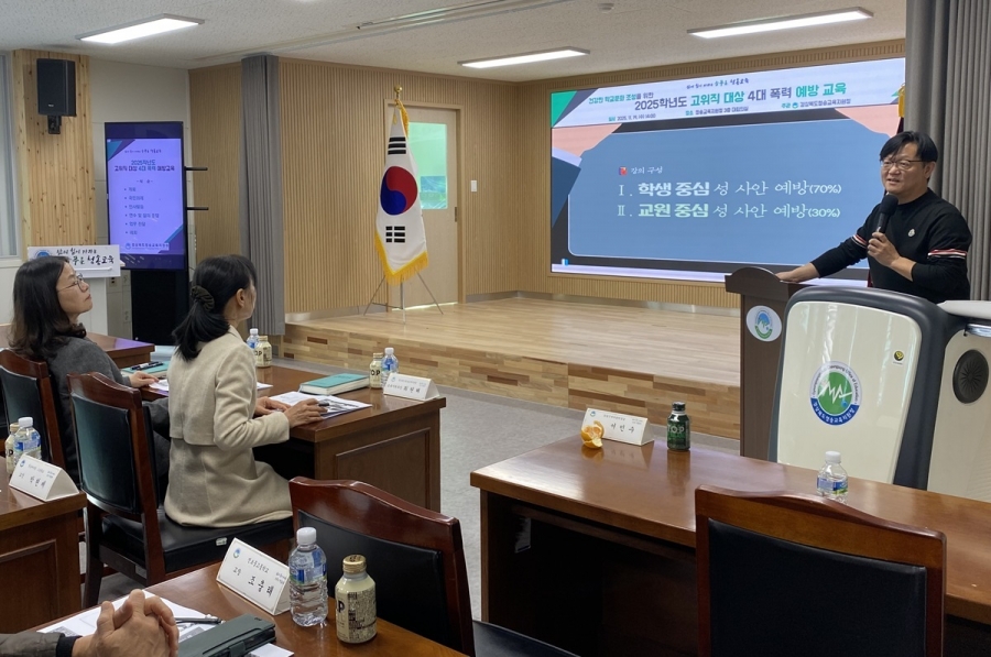 청송교육지원청(교육장 남정일)은 지난 19일 본청 대회의실에서 고위직 대상 4대 폭력 예방교육을 실시했다.