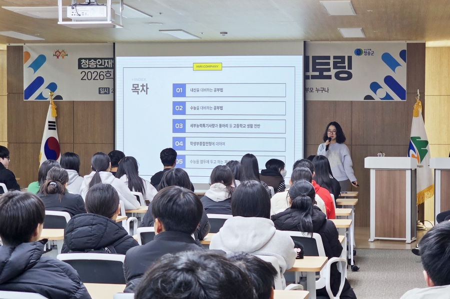 한편, 청송인재양성원은 지난 21일 2026학년도 수강생 선발시험을 실시했으며, 오는 30일 합격자 발표를 거쳐 내년 1월 초 개강할 예정이다. 또한 내년 1월 중에는 관내 학생과 학부모를 대상으로 한 입시설명회도 개최할 계획이다.