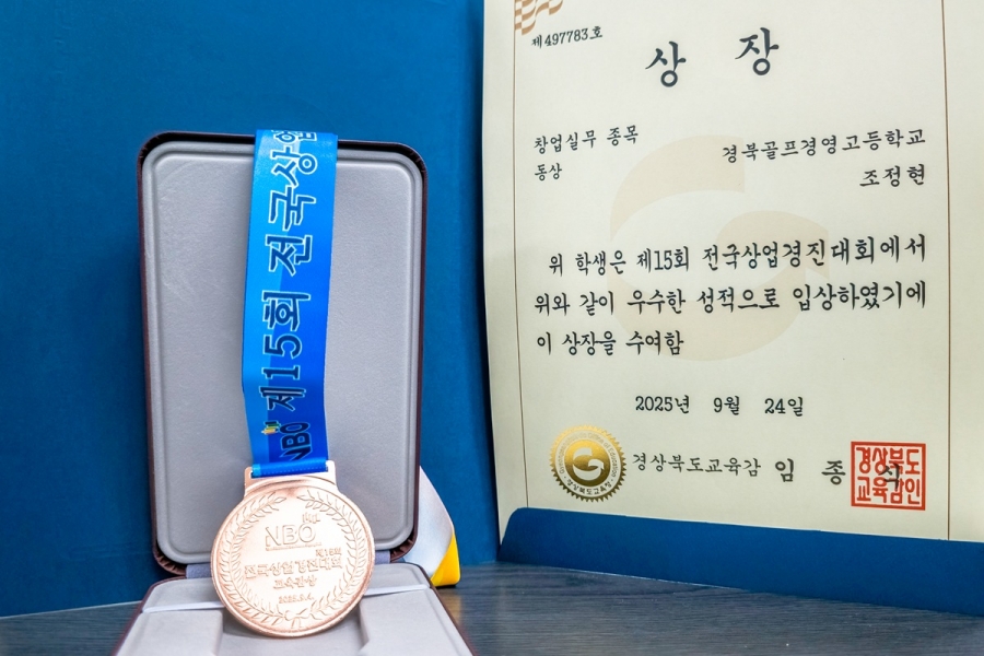 전국상업경진대회는 전국 상업계열 고등학생들이 전공 지식과 실무 역량을 겨루며 직업적 전문성을 함양하고 미래 진로 역량을 기를 수 있도록 돕고자 2011년부터 매년 열리고 있다. 올해 대회는 지난 9월 2일부터 4일까지 경주에서 열렸으며, 전국 17개 시·도 교육청이 공동 주최하고 경북교육청이 주관했다. 경북 대표로 참가한 117명의 학생들은 회계실무, 동아리콘테스트 등 다양한 종목에서 우수한 성과를 거두었고, 경북은 교육부 장관상 2종목을 비롯해 금 6개, 은 8개, 동 16개 등 총 32개의 메달을 획득했다. 특히 경북골프경영고 조정현 학생은 창업실무 부문에 출전해 1학년임에도 불구하고 창의적인 아이디어와 실무 역량을 인정받아 동상을 수상하며 눈길을 끌었다. 정철수 교장은 “1학년 학생이 전국 규모 대회에서 성과를 거둔 것은 의미가 크다”며, “앞으로도 학생들이 전공 역량을 발휘해 미래 사회가 요구하는 전문 인재로 성장할 수 있도록 적극 지원하겠다”고 말했다. 수상자인 조정현 학생은 “첫 전국대회 도전이라 긴장도 많았지만 선생님들의 지도와 친구들의 응원이 큰 힘이 됐다”며, “앞으로 더 열심히 배우고 노력해 창업과 경영 분야에서 꿈을 펼치고 싶다”고 소감을 밝혔다.